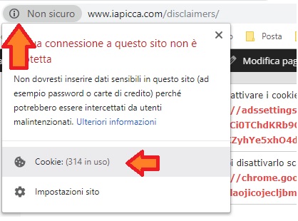 Per esempio su Chrome, basta cliccare sull’icona (i) accanto alla barra degli indirizzi.